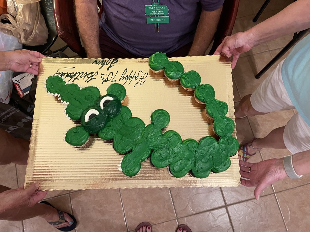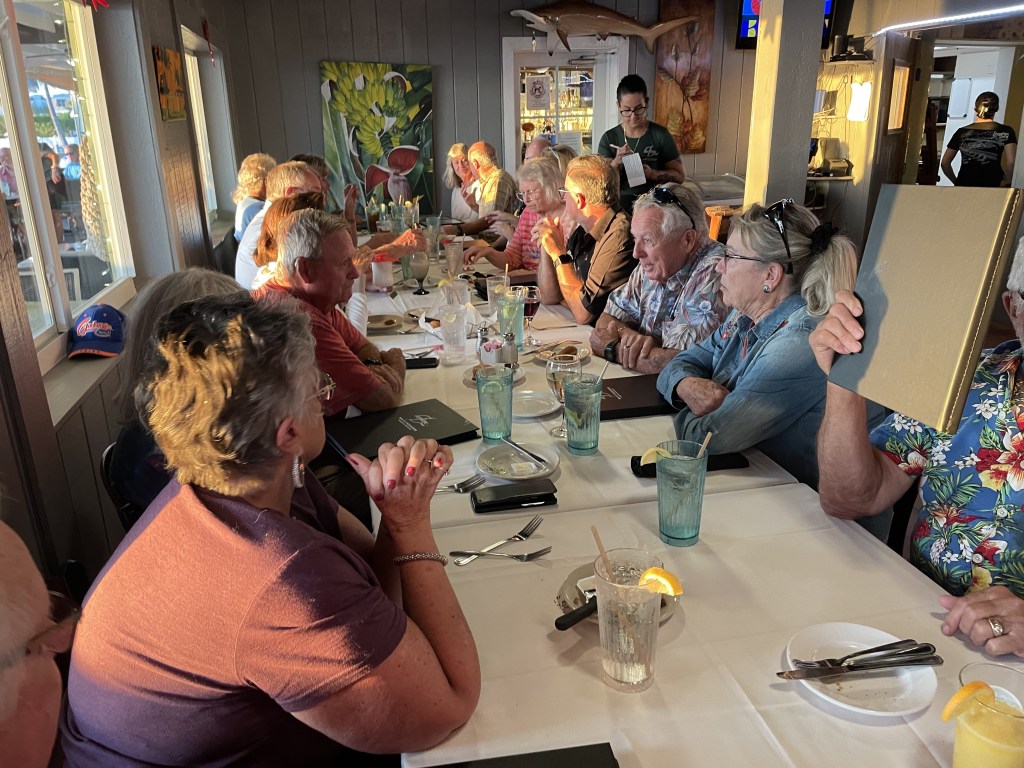 FL Roll’N Gators love to eat. Here we are enjoying the local cuisine at Lazydays South and Sparky’s Landing Fish and Cocktails restaurants.